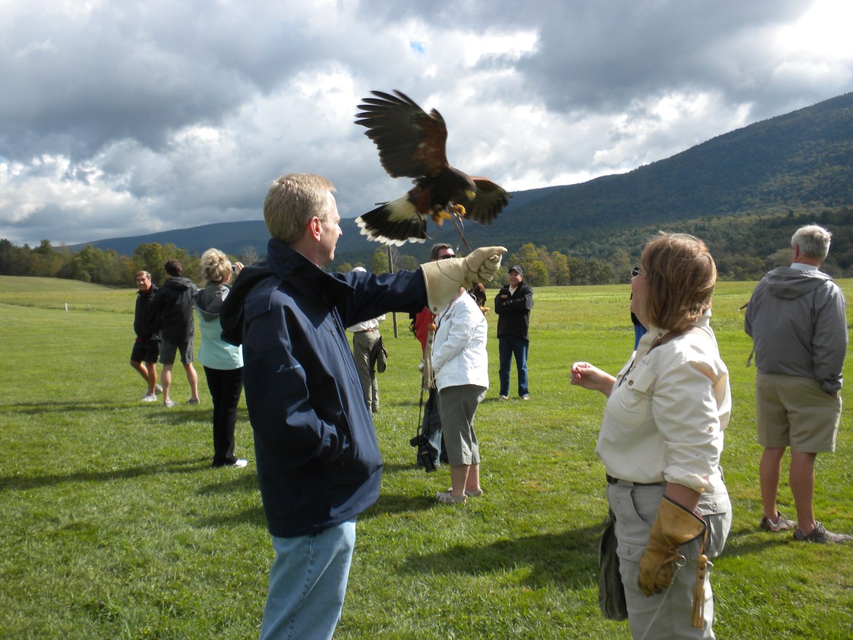 A few years ago, my wife, Peggy, and I visited The British School of Falconry in Manchester, Vermont. To have the thrill of launching birds of prey—Harris Hawks, in our case—from our arm and receiving them back again? No need to ask us twice! Let’s go!